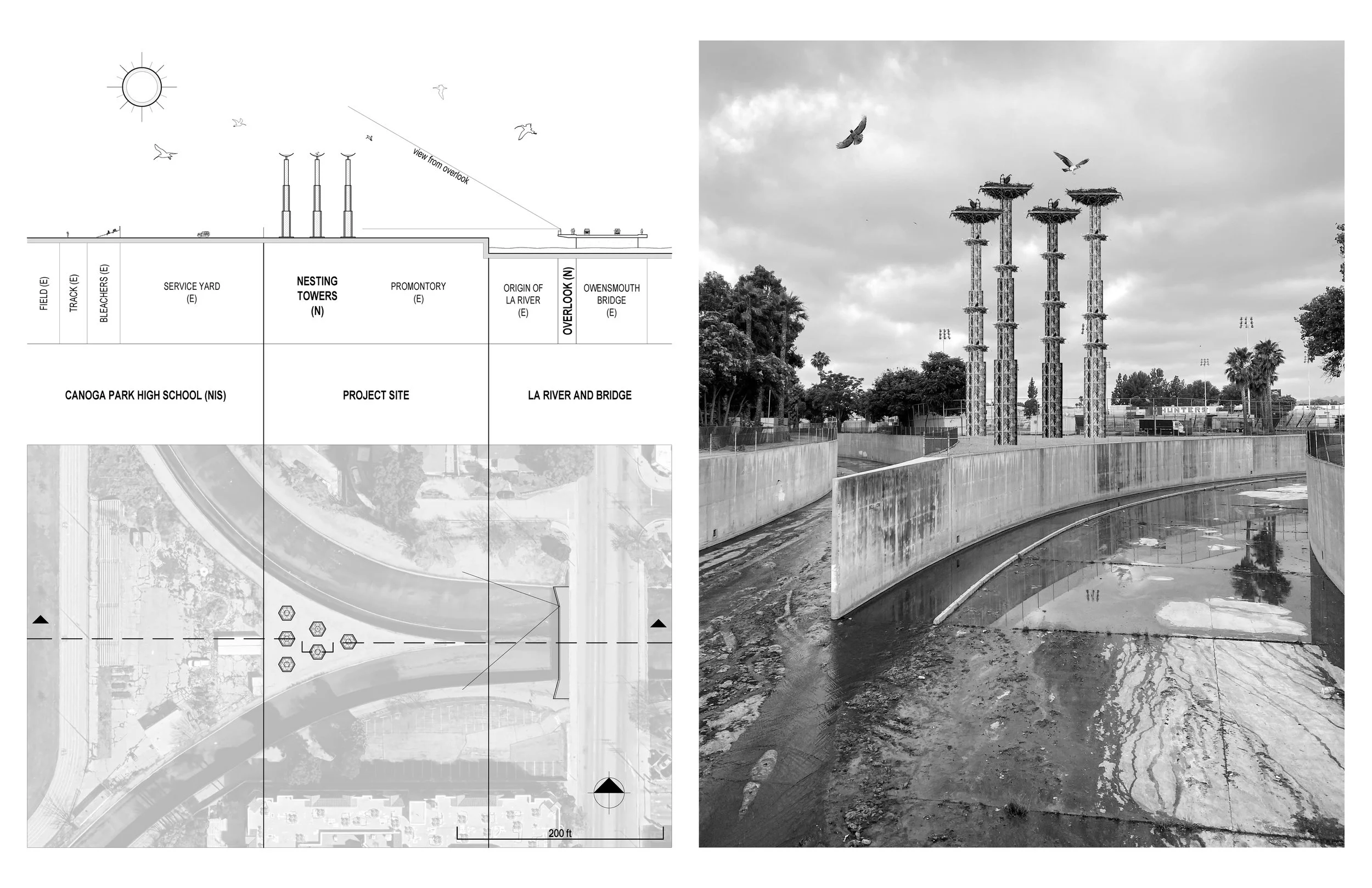Nesting Towers: Prefabricated, telescoping lattice structures adapted from cellular tower typologies and fitted with nesting platforms.